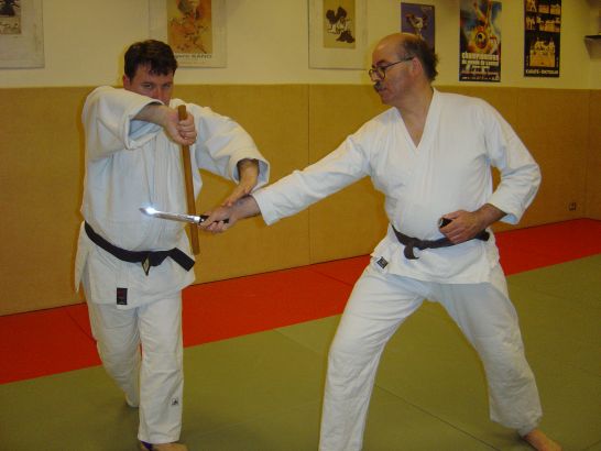 <Retour> Photos Tambo "Ceux qui pratiquent le tambo avec l'esprit des Arts Martiaux sont certains de goûter au plaisir qu'il y a à combattre et à vaincre par la rapidité, la technique, la psychologie du combat, l'étude des actions de l'adversaire, les feintes qui, tout en déjouant les pièges, permet de remporter la victoire." | |||||